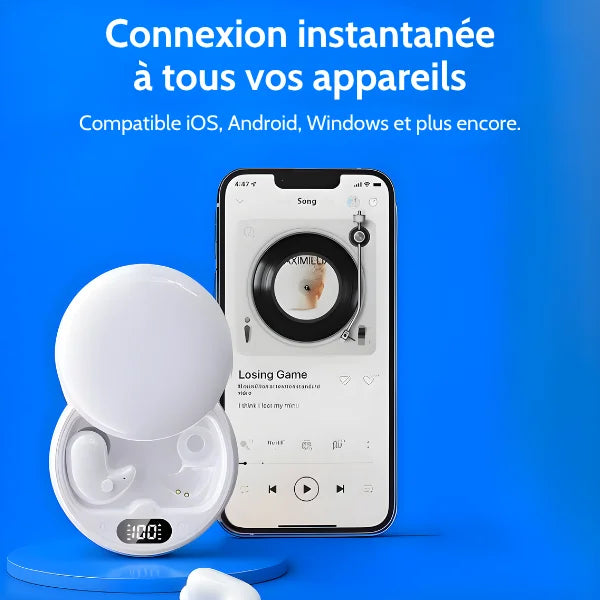 Ouvrez simplement l’étui, connectez-les via Bluetooth… et profitez-en immédiatement.